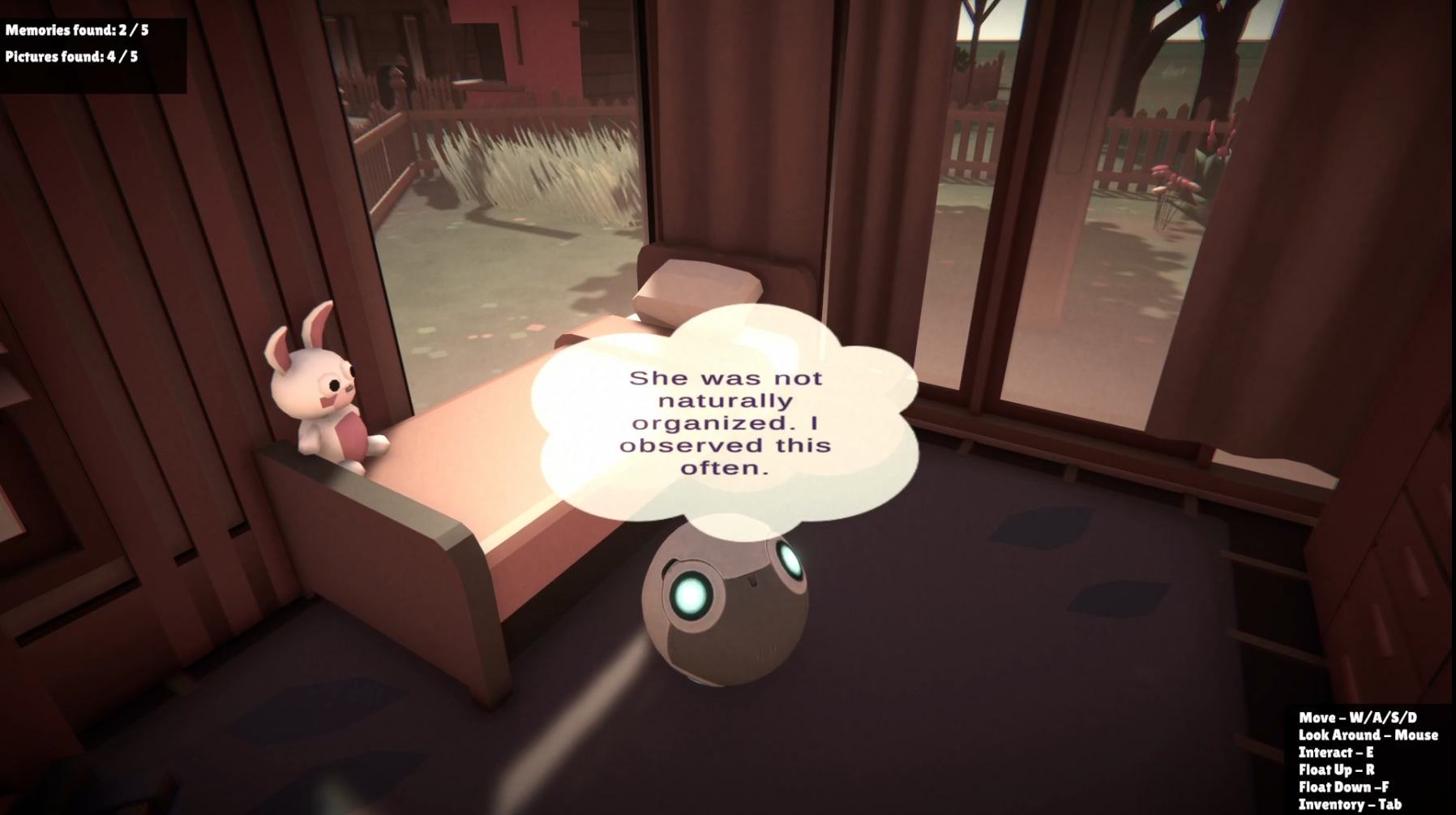 You are Pip, a small companion robot who awakens in an abandoned suburban home with no memory of what happened. As you explore the quiet rooms, you'll discover data chips containing memories, moments of joy, struggle, and heartbreak that reveal why you were left behind.